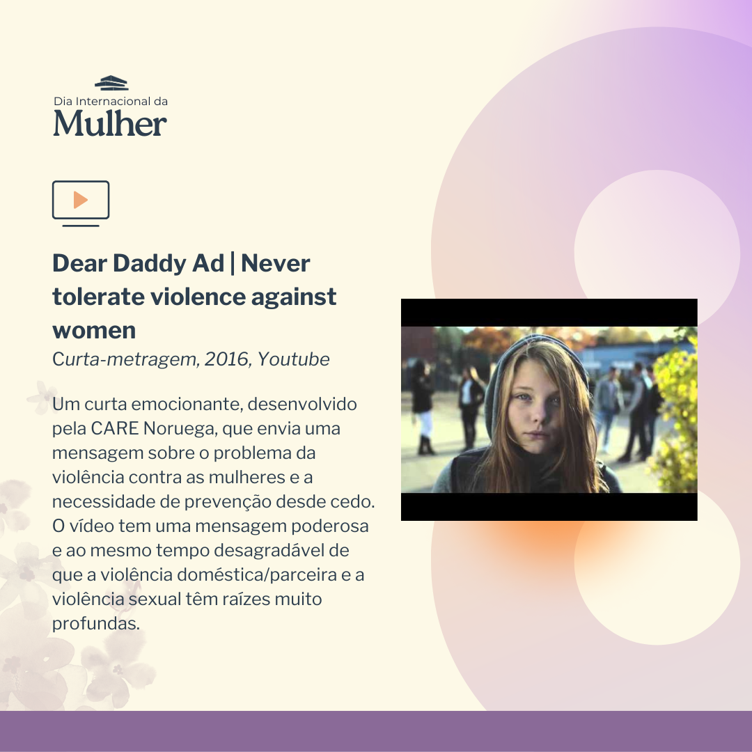 E o curta-mestragem “Dear Daddy” que envia uma mensagem sobre o problema da violência contra as mulheres e a necessidade de prevenção desde cedo.