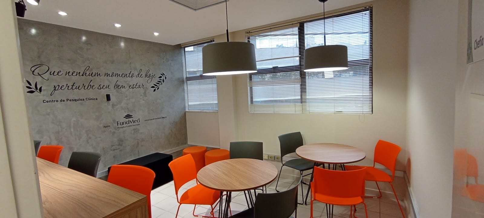 A sala conta com 10 lugares e oferece infraestrutura para lanches e alimentação de pesquisadores e técnicos que circulam pelo Centro de Pesquisa Clínica do Hospital de Clínicas de Porto Alegre.